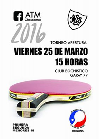Por otra parte, es para destacar que el Circuito 2016 de la Asociación de Tenis de Mesa Chascomús comenzará el viernes 25 de marzo, que es feriado, en las instalaciones del Bochi.